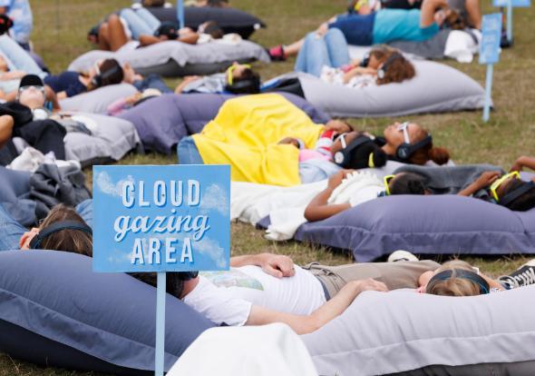 Newark Creates brought the immersive CLOUDSCAPES installation to Newark Castle, inviting visitors to relax on giant beanbags while listening to reflective audio stories inspired by the sky.